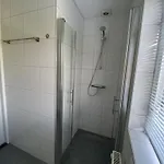 Här finns en terrass med utsikt över trädgården. I badrummet finns även en separat toalett och en dusch.